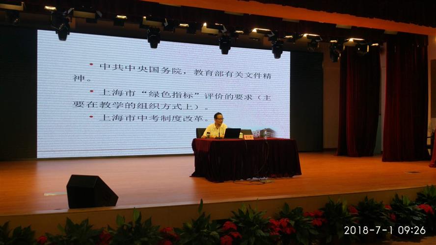 来自上海市静教院附中的特级校长张人利老师首先用一场名为《全面转变教学方式的课程统整》的精彩报告开启了2018上师大学区暑期教师培训的序幕。张校长用全新的教育理念和静教院附中开发的“TRIP”课程的具体实践分两大版块给学区老师传达了这样的一种声音:那就是“育人育能的关键在于全面转变教学方式”。